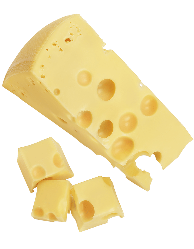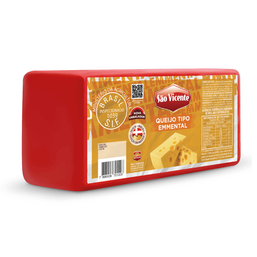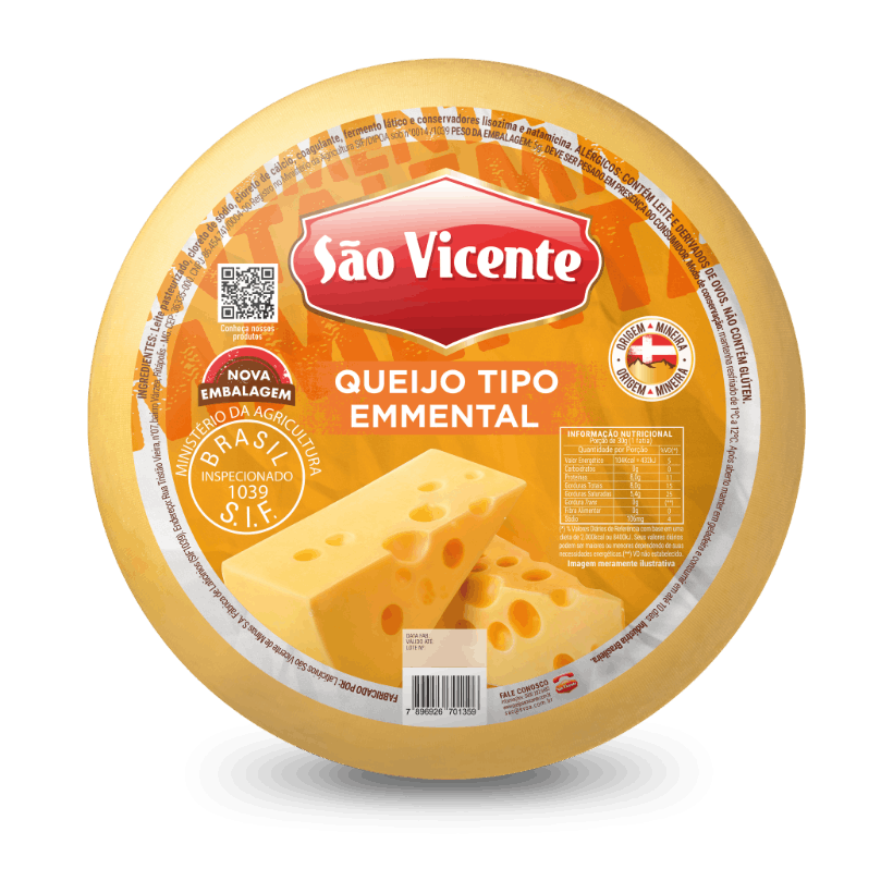 De sabor suave e equilibrado, o Emmental é um queijo de textura firme por fora e macia por dentro, reconhecido pelas olhaduras características. É um queijo fácil de agradar, com perfil delicado e muito versátil no consumo do dia a dia.